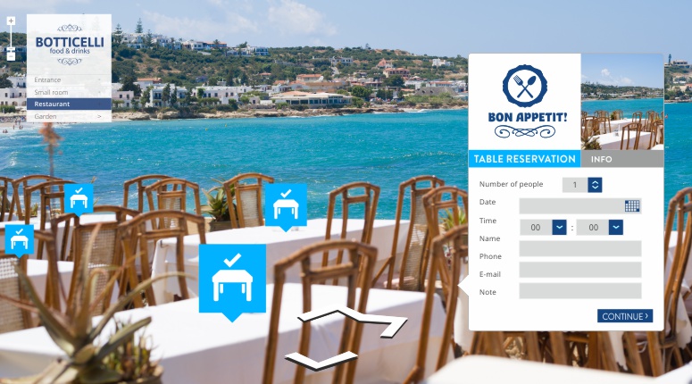 Click & Buy Direkt aus der Virtuellen Tour Verkaufen Infopoints Zeigen Sie Informationen, dort wo sie hingehöhren Produkte Infos und Kaufanreize schaffen Reservierungen Hier kann der Kunde wählen, wo er sitzen möchte Hotelbereiche Entdecken und Bestellen Frühstück Welches Menü hatten Sie gestern Online verkauft?